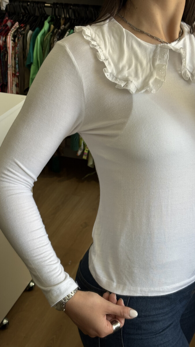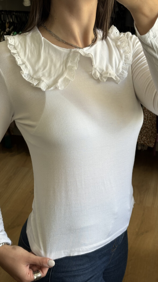 Remera blanca con cuello bebe