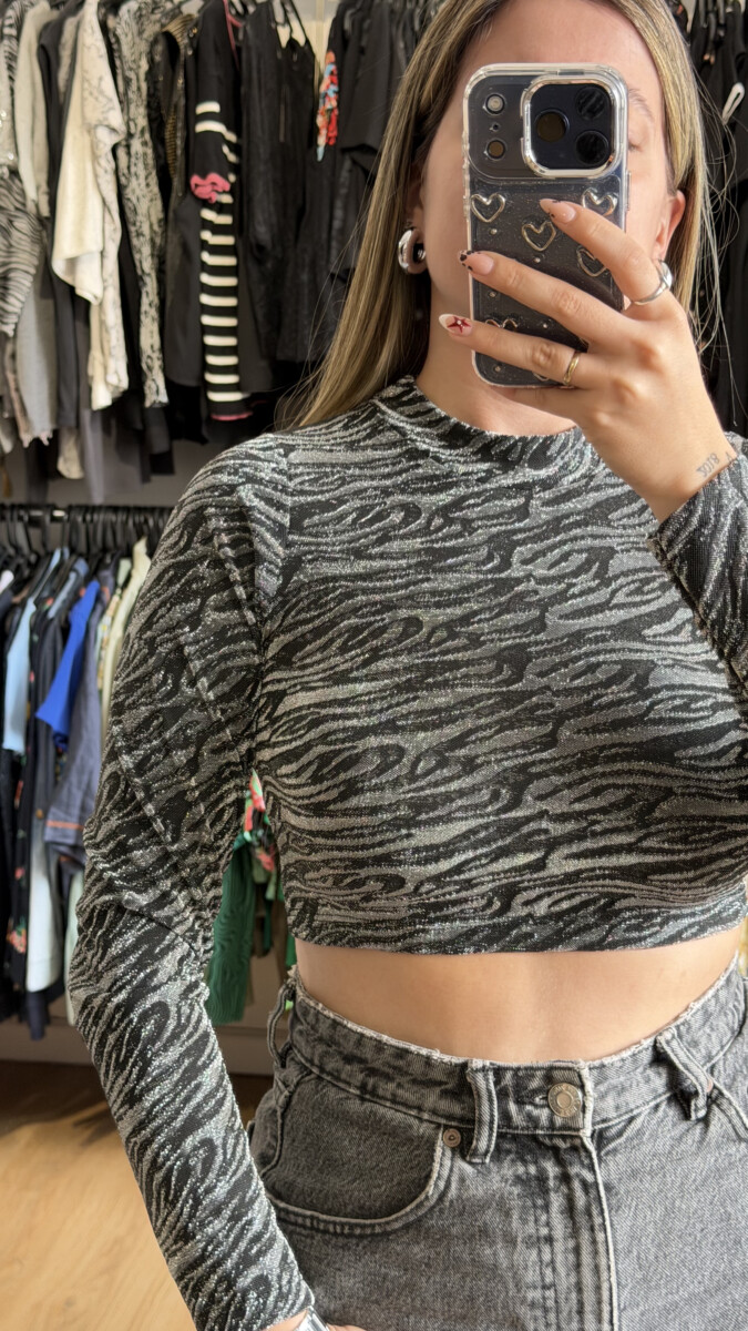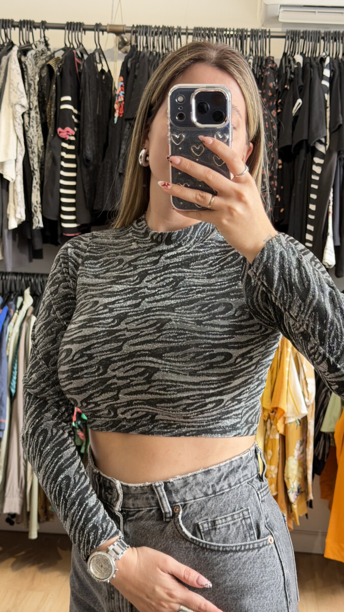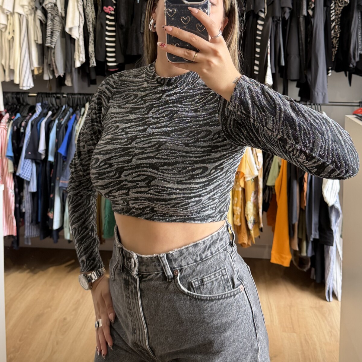 Sé el primero en valorar “Remera crop top plateada y negra”