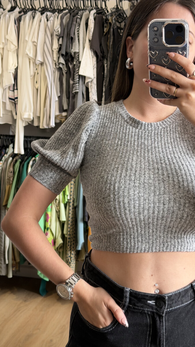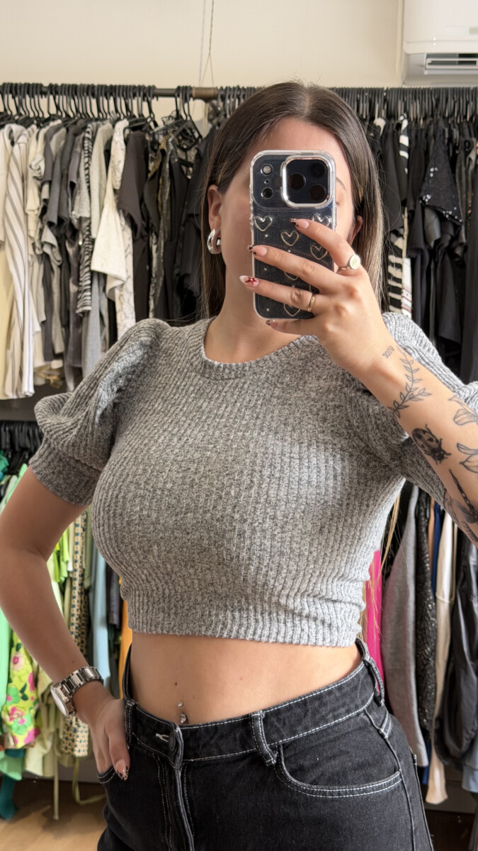 Remera crop top Zara gris