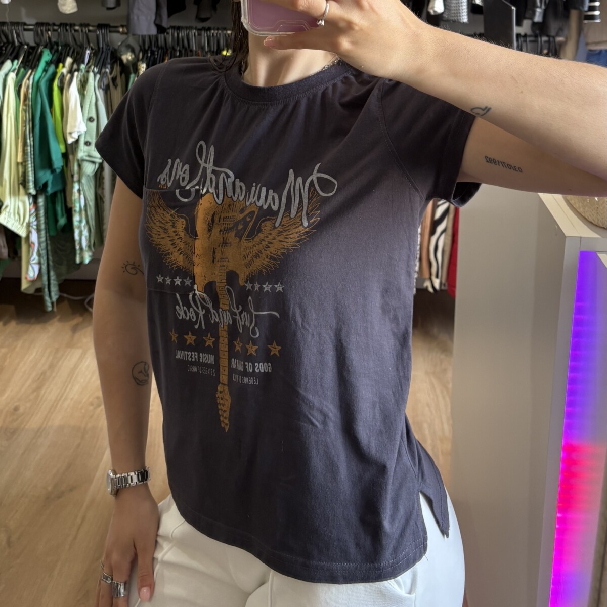 • Remera marca Maui&Sons negra con letras grises
