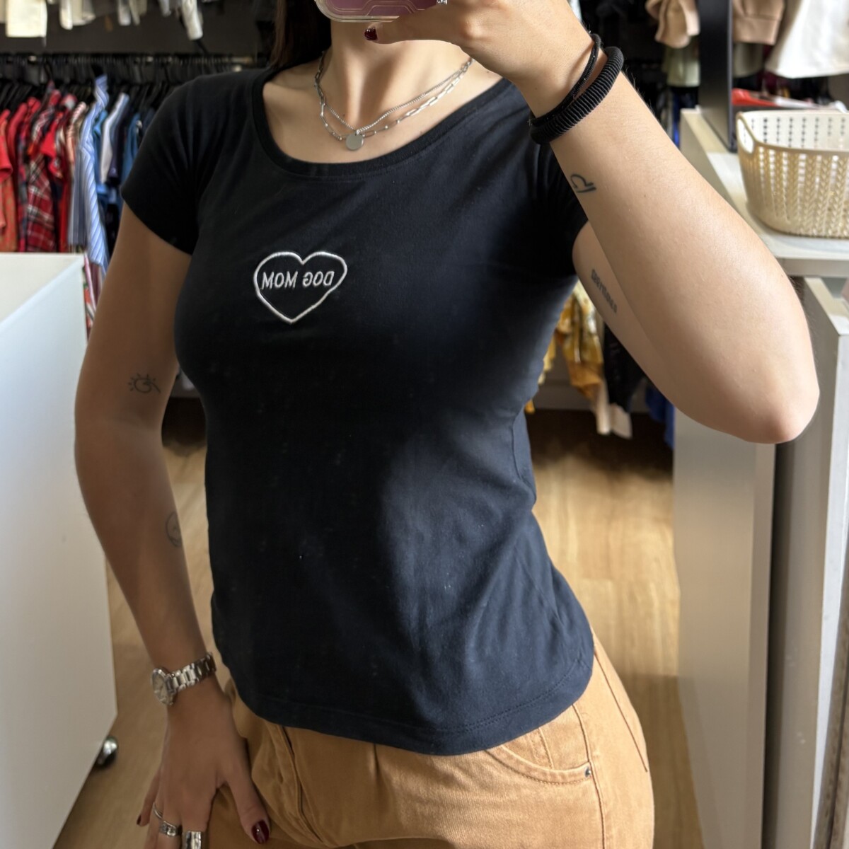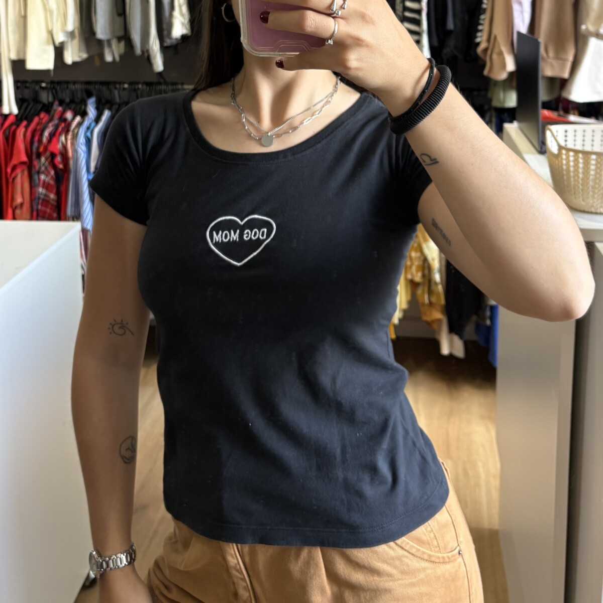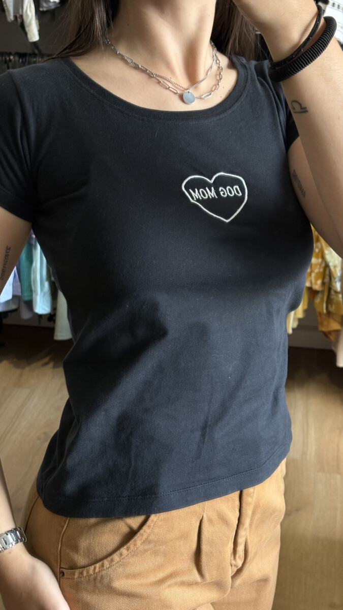 • Remera de algodón color negra con bordado blanco “DOG MOM”