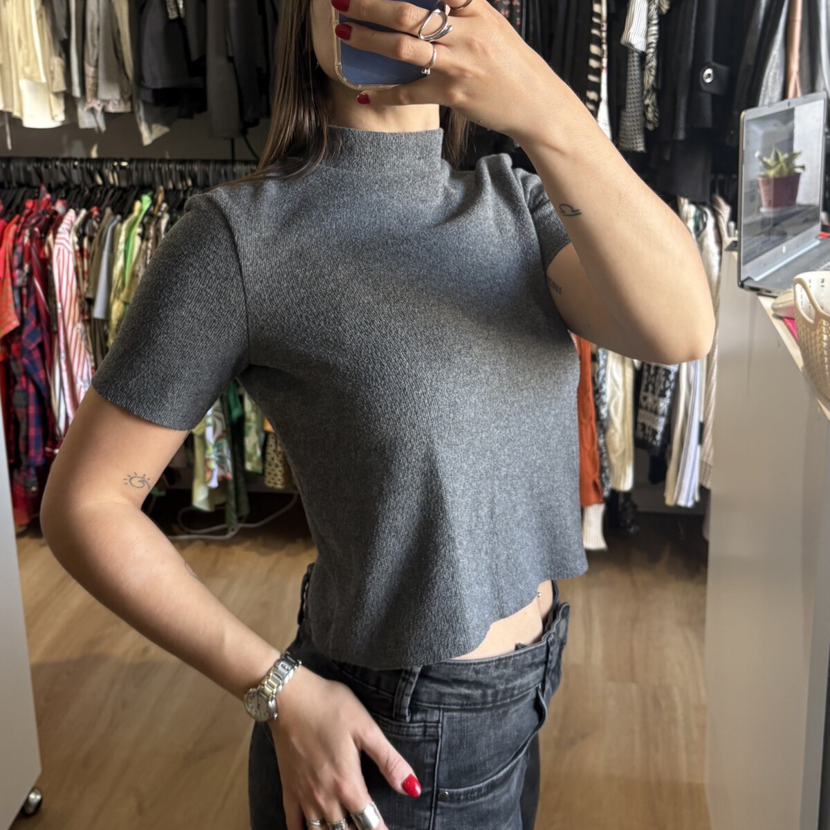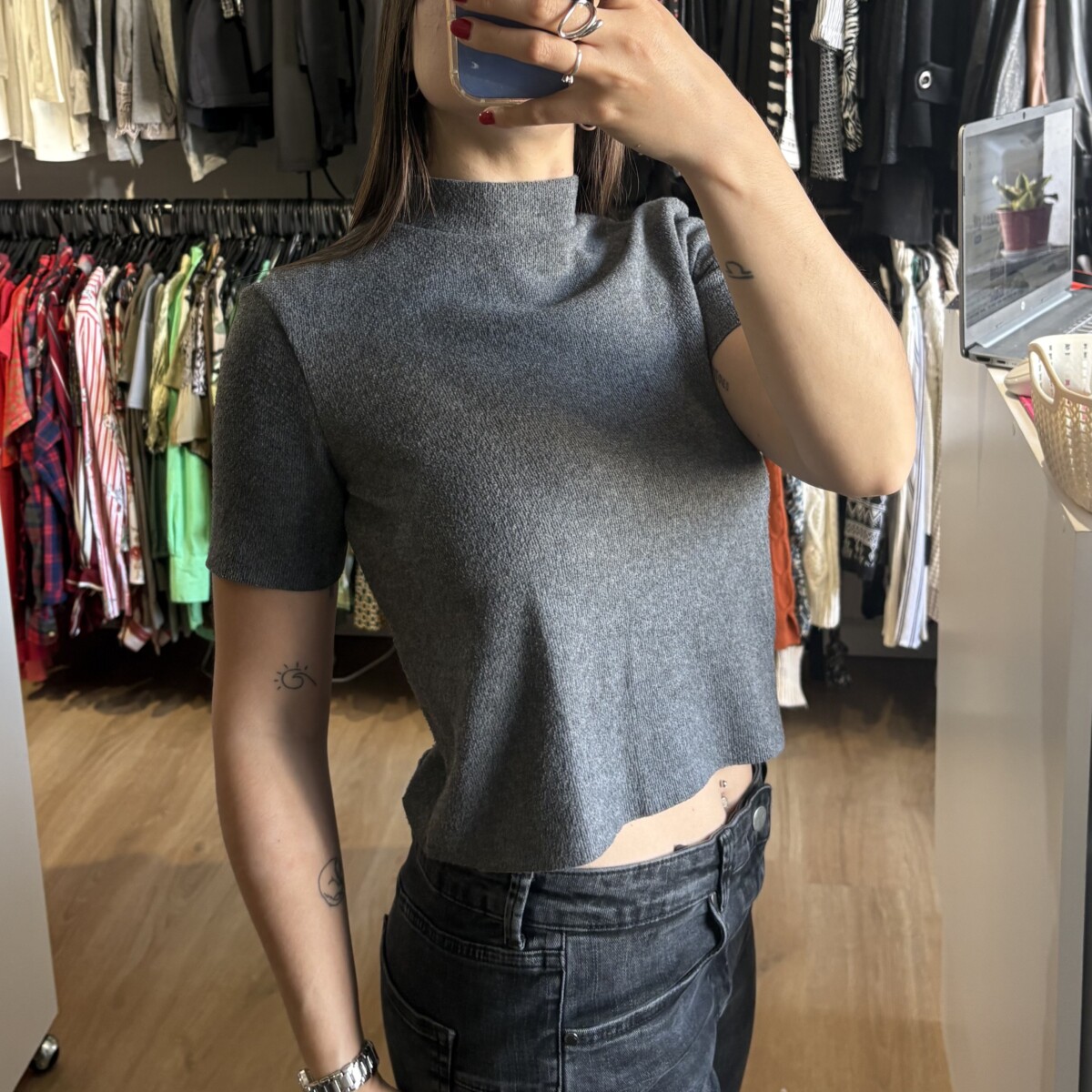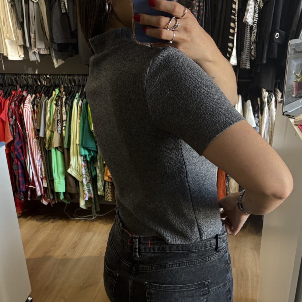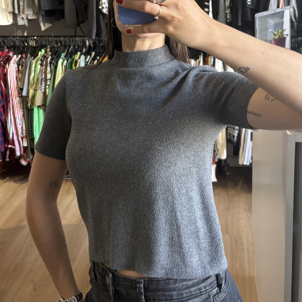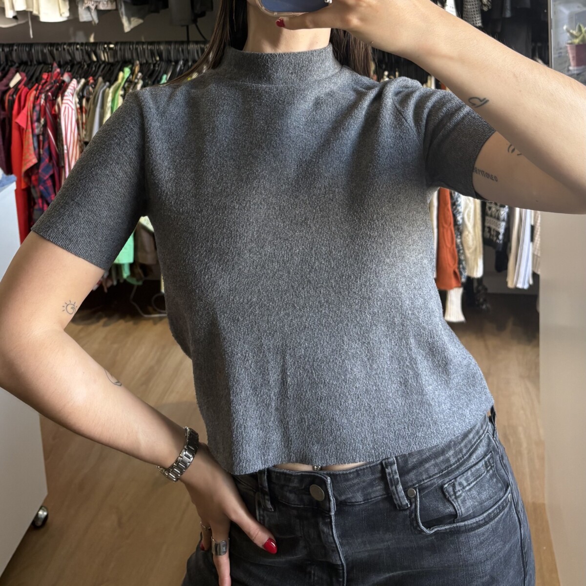 Sé el primero en valorar “Remera Zara gris oscuro con cuello”