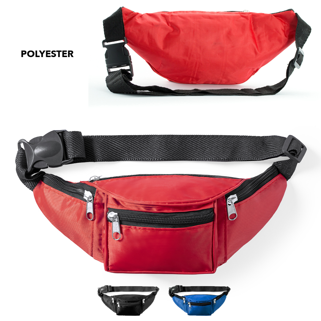 - Riñoneras baratas con bolsillos confeccionada de un poilester resistente con cintura con cierre de clic ajustabe.