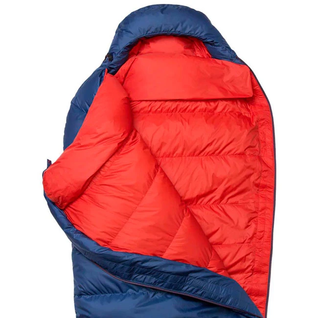 Saco de dormir de plumas de alto rendimiento de la marca Mountain Equipment confeccionado con materiales reciclados, un saco adecuado para para alpinismo y trekking.