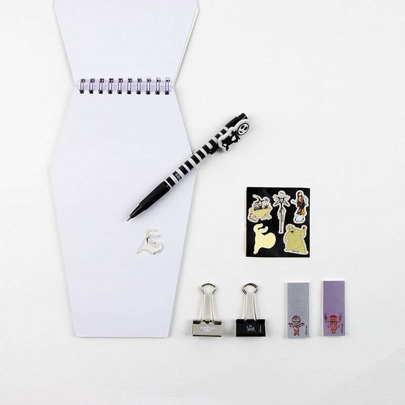 El Set de papelería Pesadilla antes de Navidad es el regalo perfecto para los fans de Jack Skellington y su mundo. Con un diseño inspirado en el icónico film de Tim Burton, este set incluye cuaderno, bolígrafos y otros accesorios únicos que harán que tus notas sean tan inolvidables como la película. Ideal para llevar la magia de Halloween a tu escritorio durante todo el año.