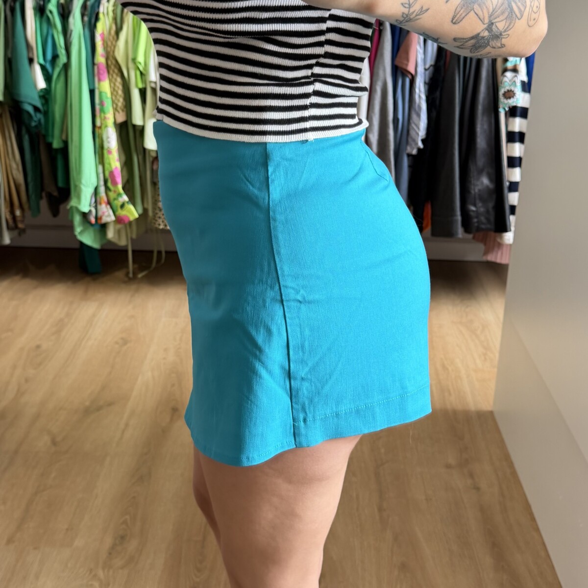 Short pollera Bluesteel turquesa