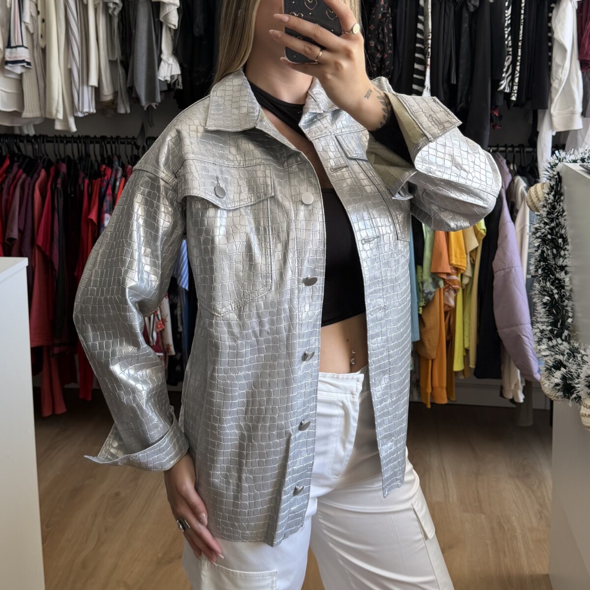 Sé el primero en valorar “Sobre camisa cuerina plateada croco”