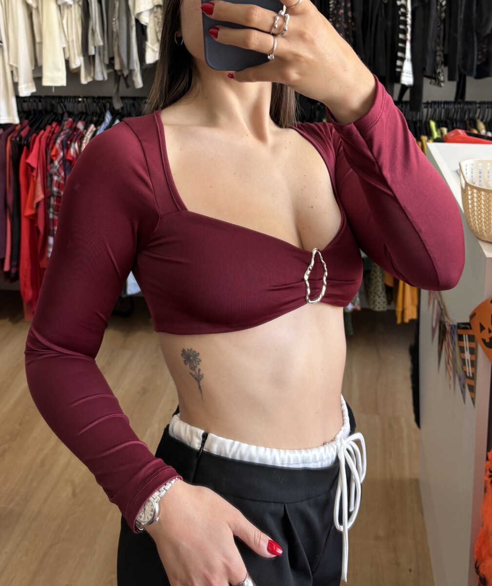 Top bordo con hebilla plateda