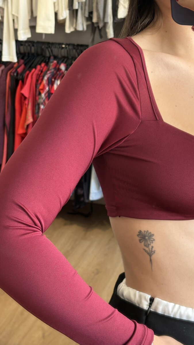 • Top bordo con hebilla plateda de forma asimétrica