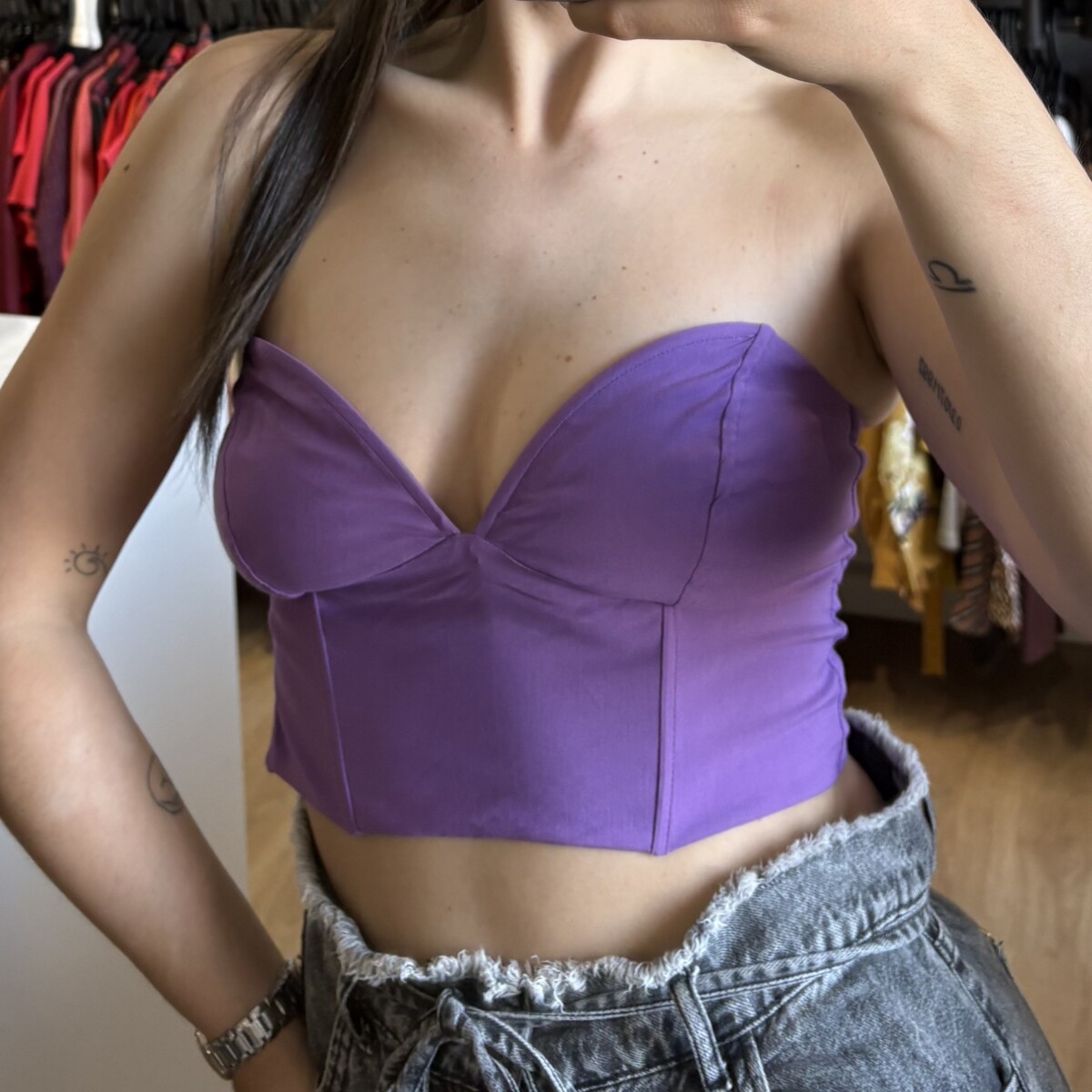 Top corset Zara strapless violeta