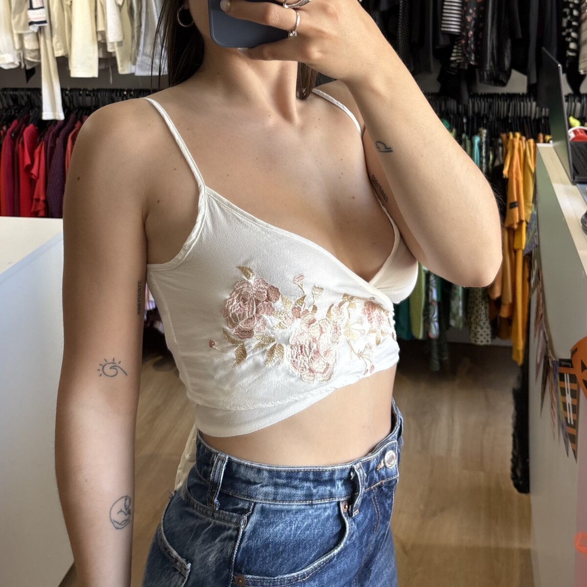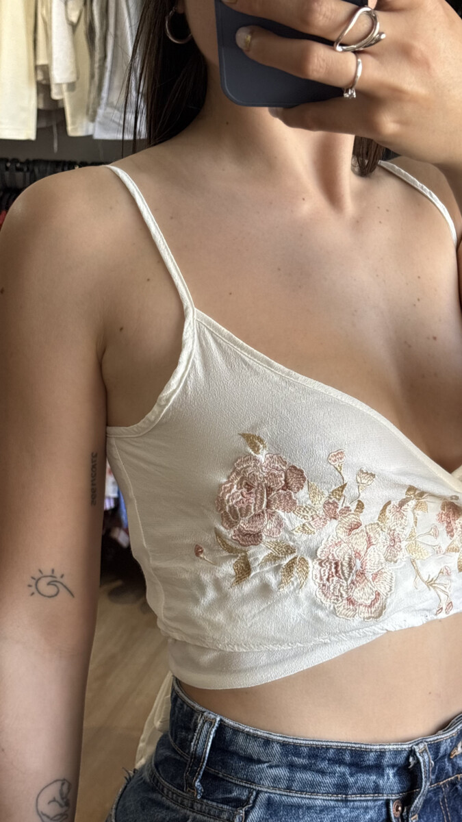 • Top marca Daniel Cassin crudo con rosas rosadas