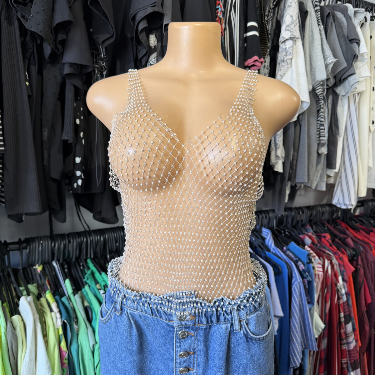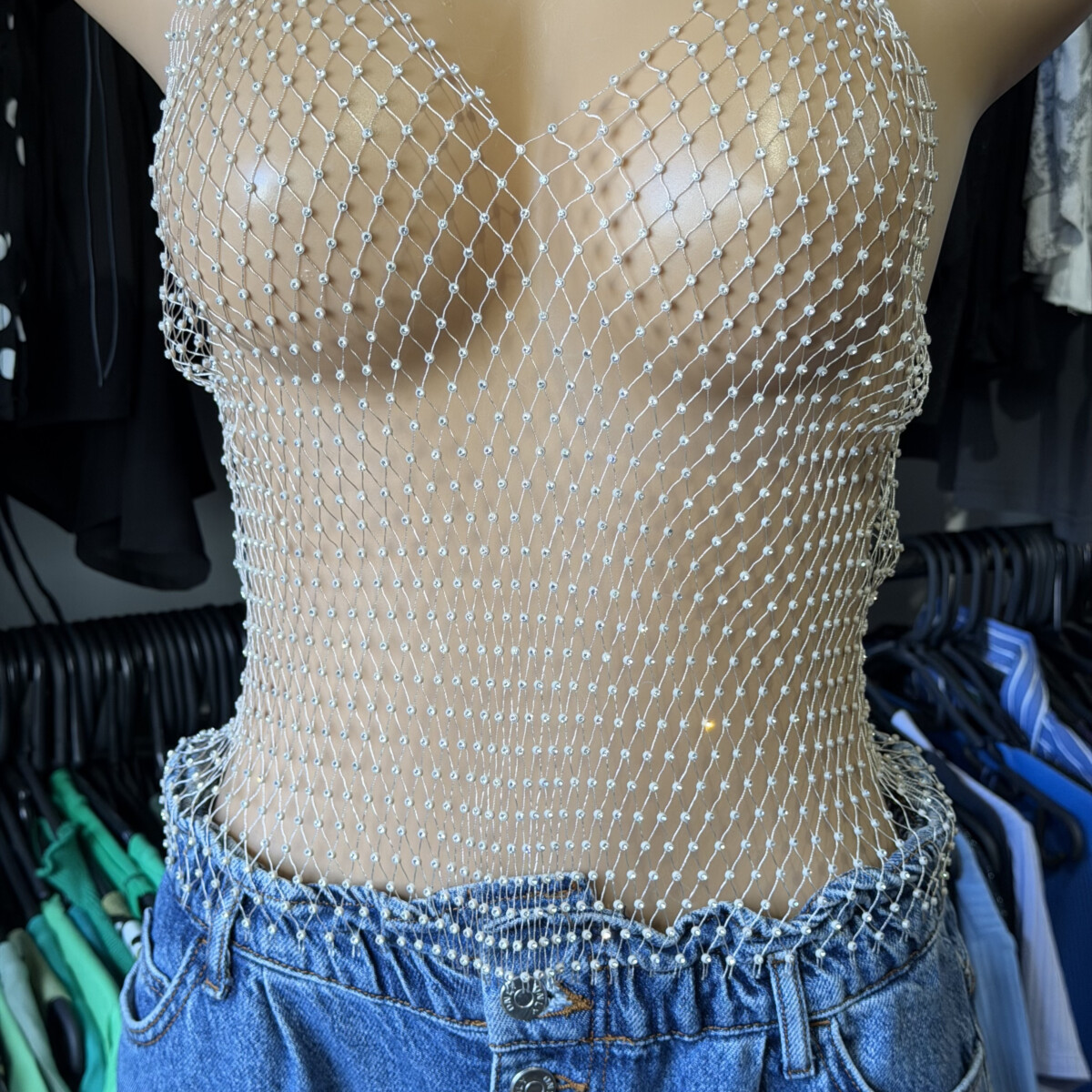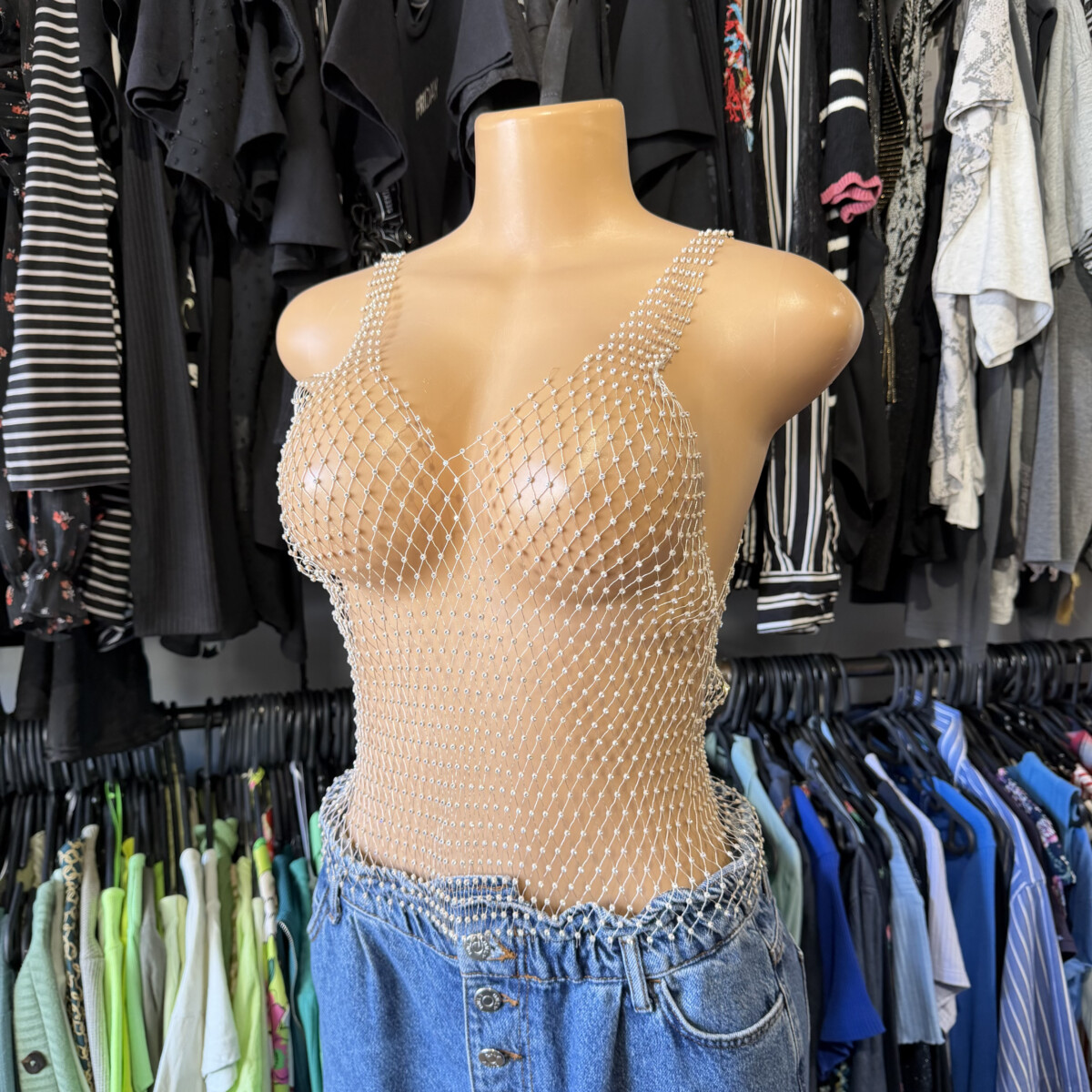 Sé el primero en valorar “Top musculosa de red con strass beige”
