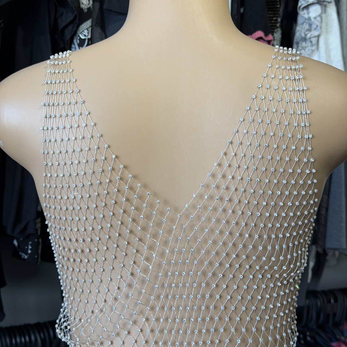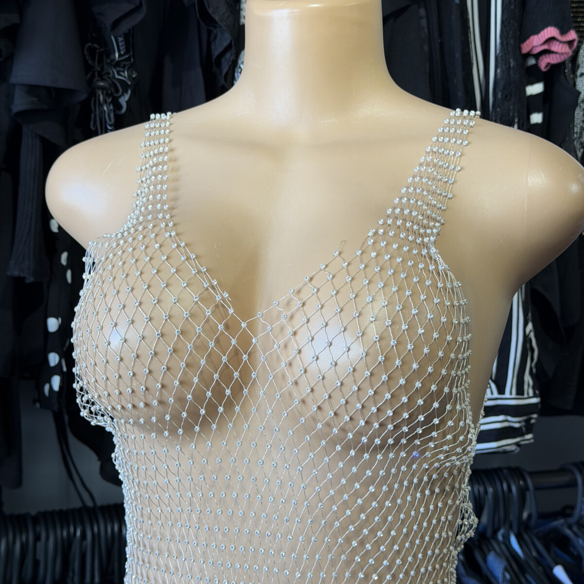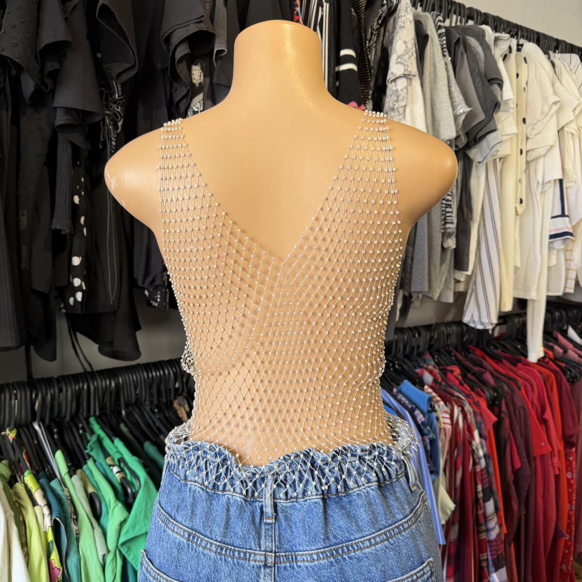Sé el primero en valorar “Top musculosa de red con strass beige”