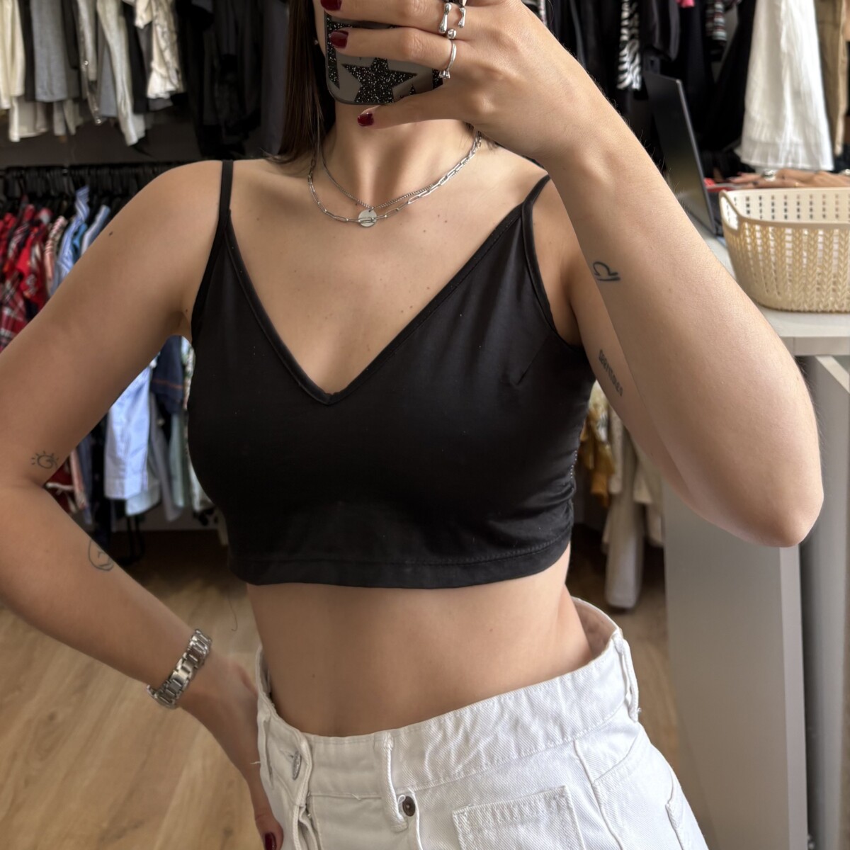• Top color negro, atado atrás