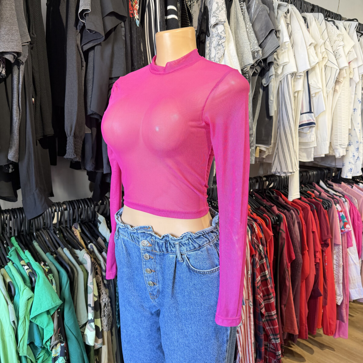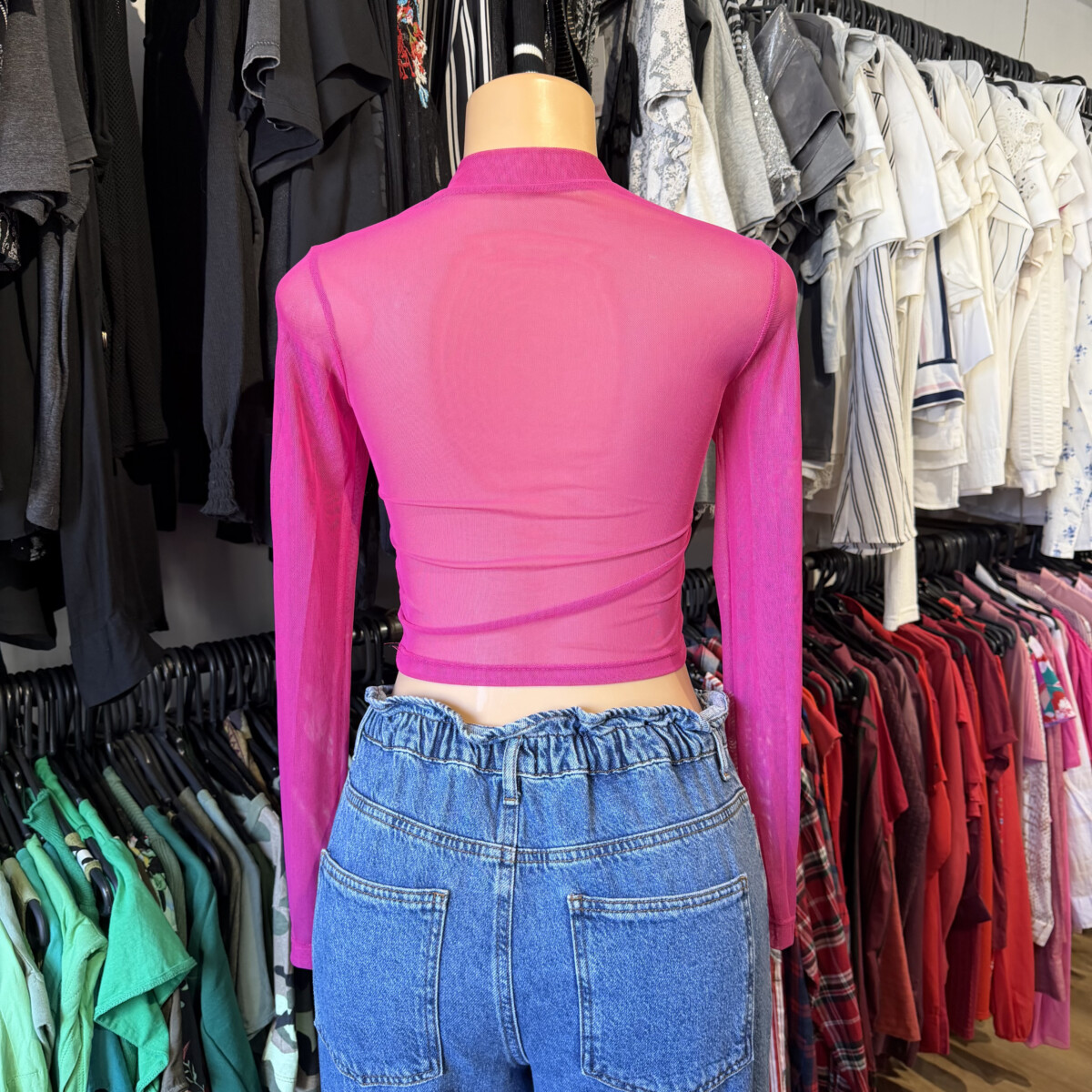 Top traslucido fucsia