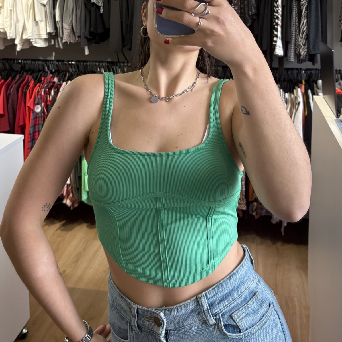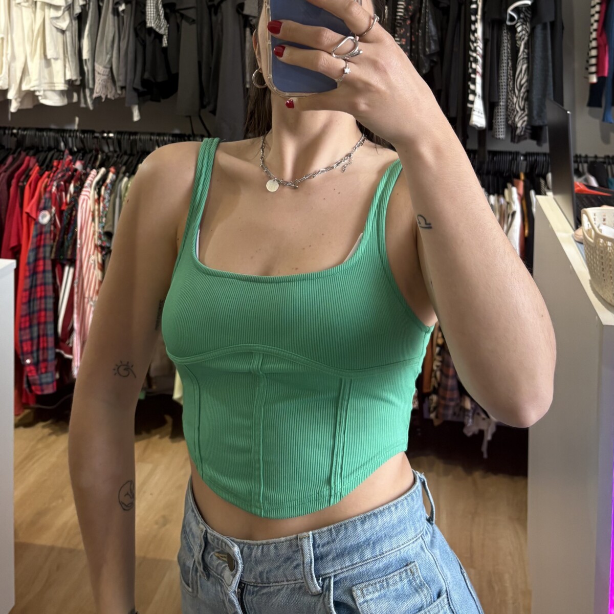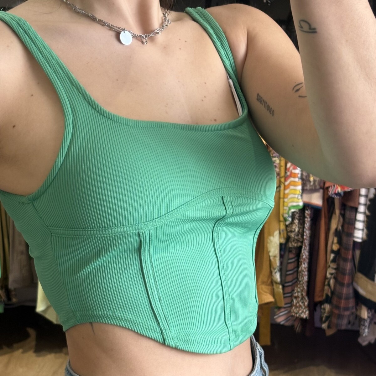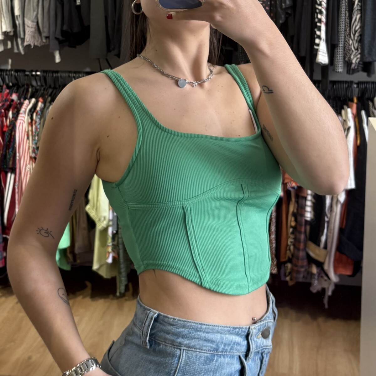 Top verde fuerte, estilo corset