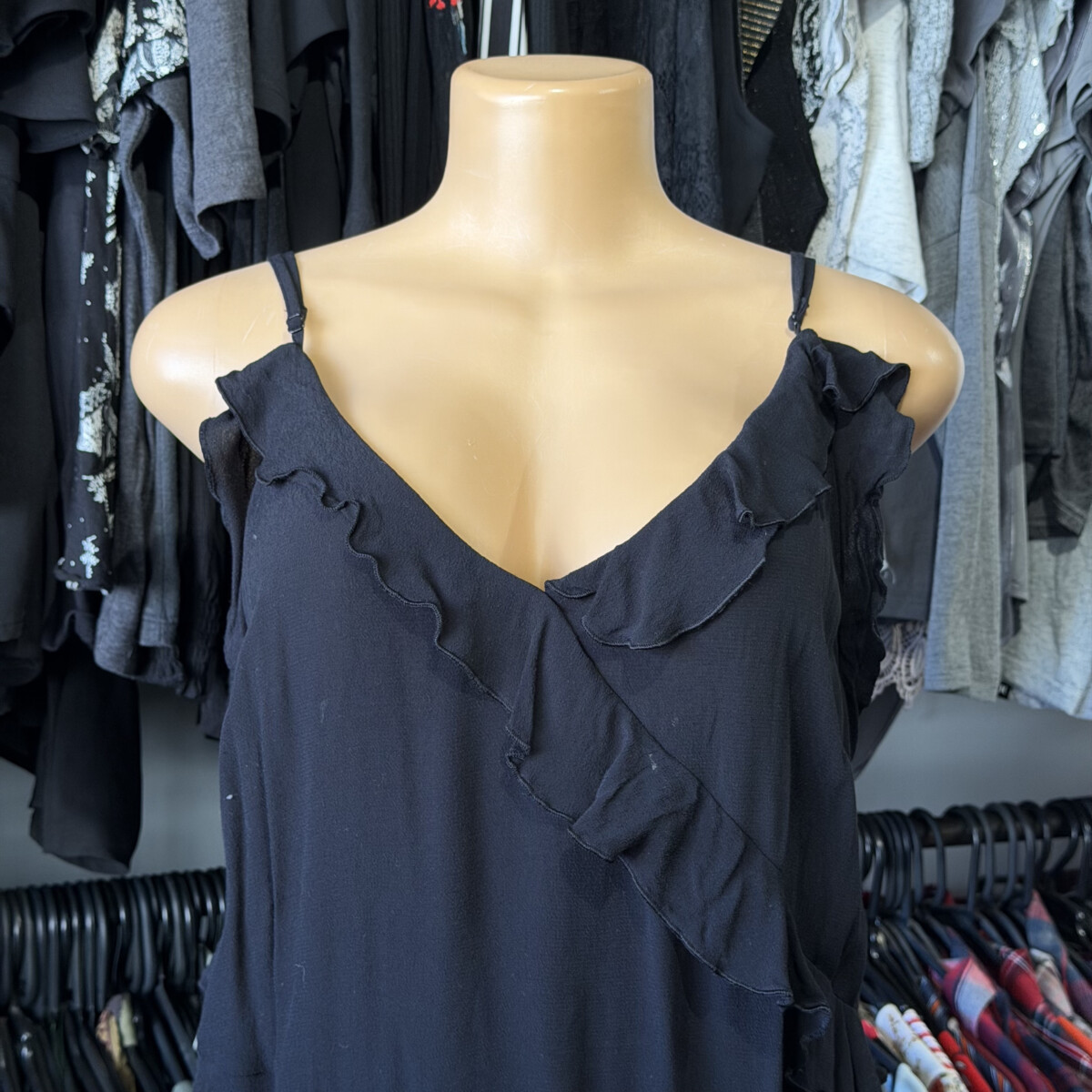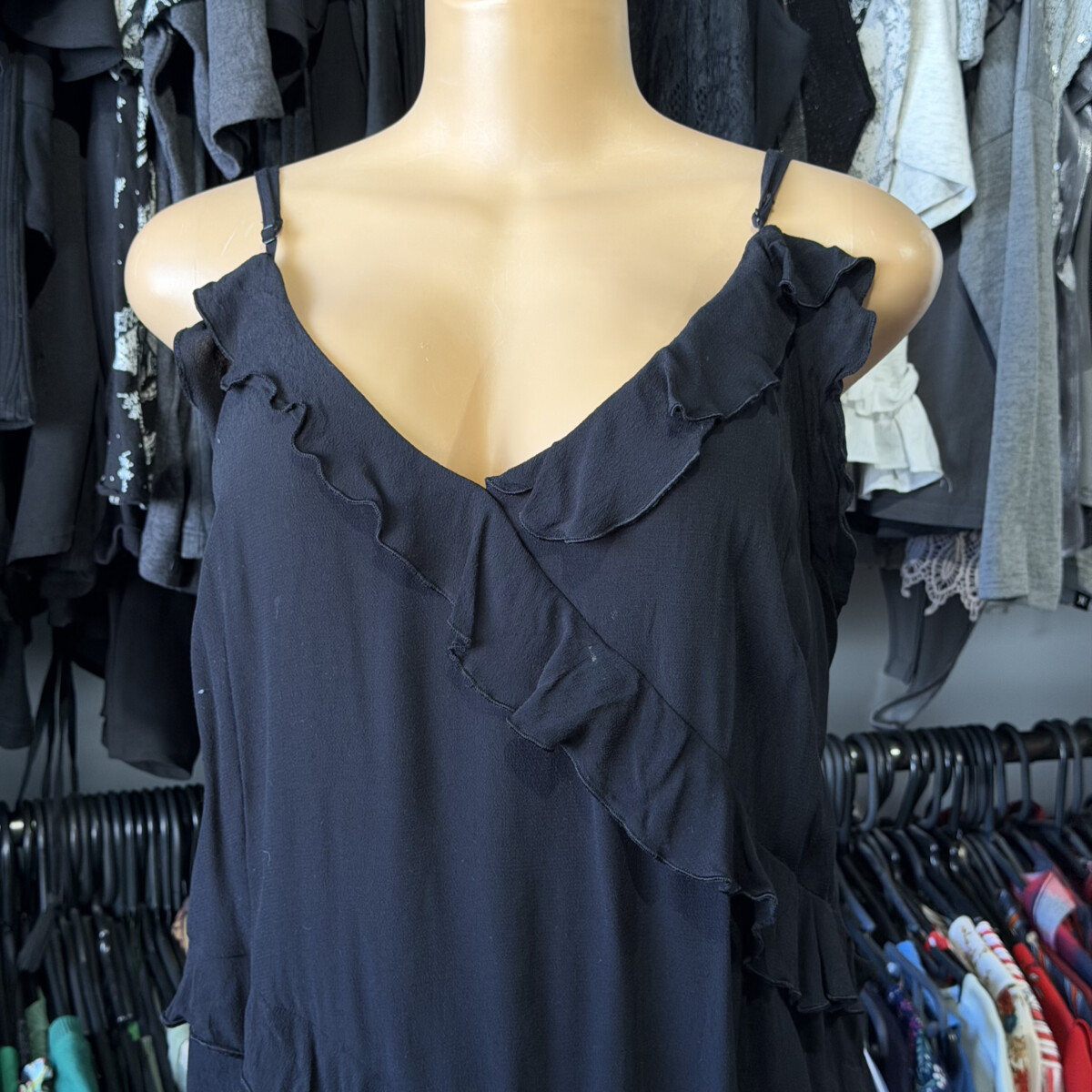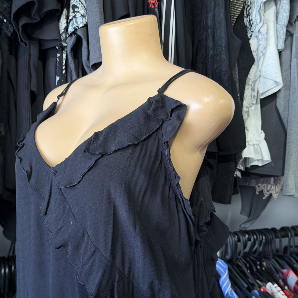 • Color negro con voladitos, escote en V