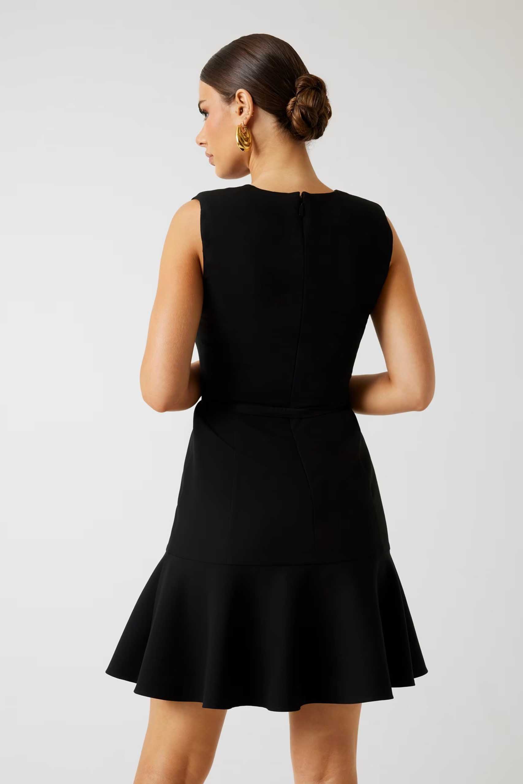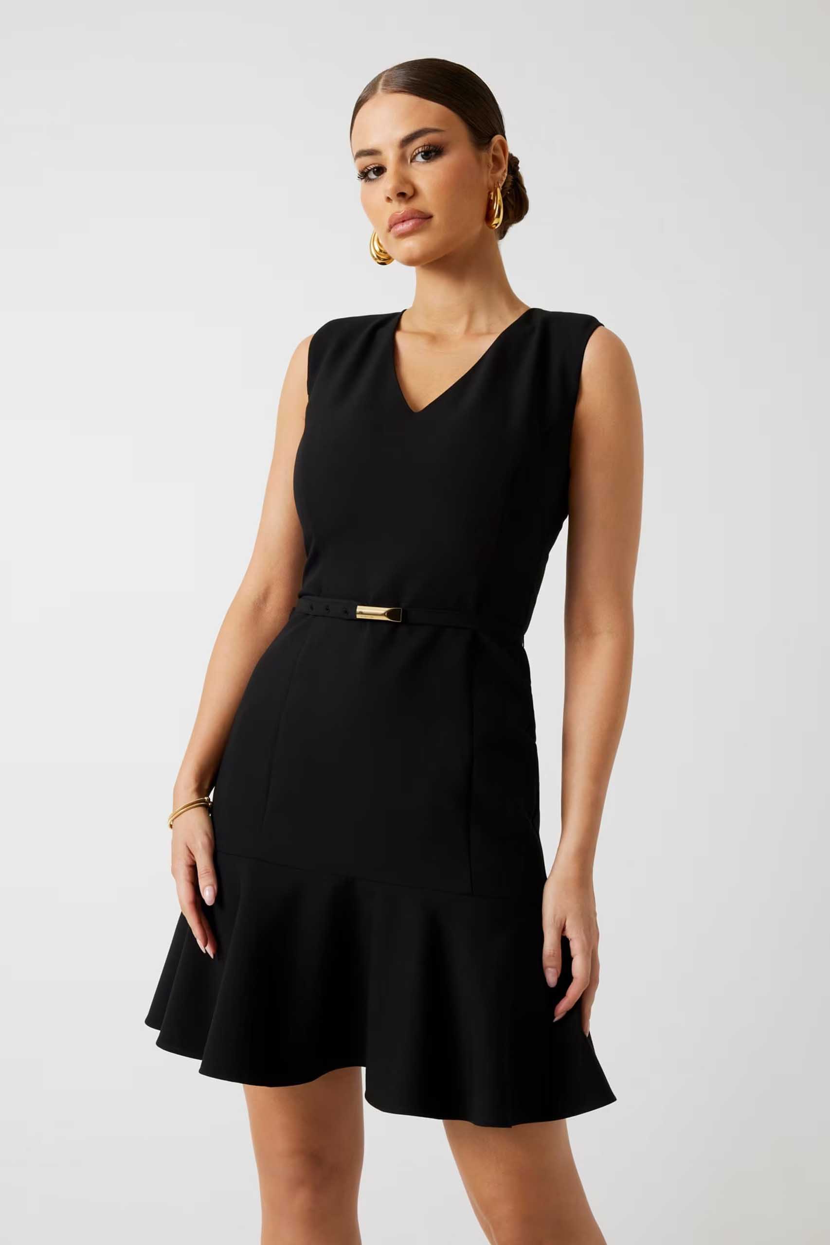 COMPOSICIÓN DEL TEJIDO PRINCIPAL: 71 % Poliéster, 22 % Viscosa, 7 % Elastano. FORRO: 100 % poliéster. CINTURÓN: 71 % Poliéster, 22 % Viscosa, 7 % Elastano.