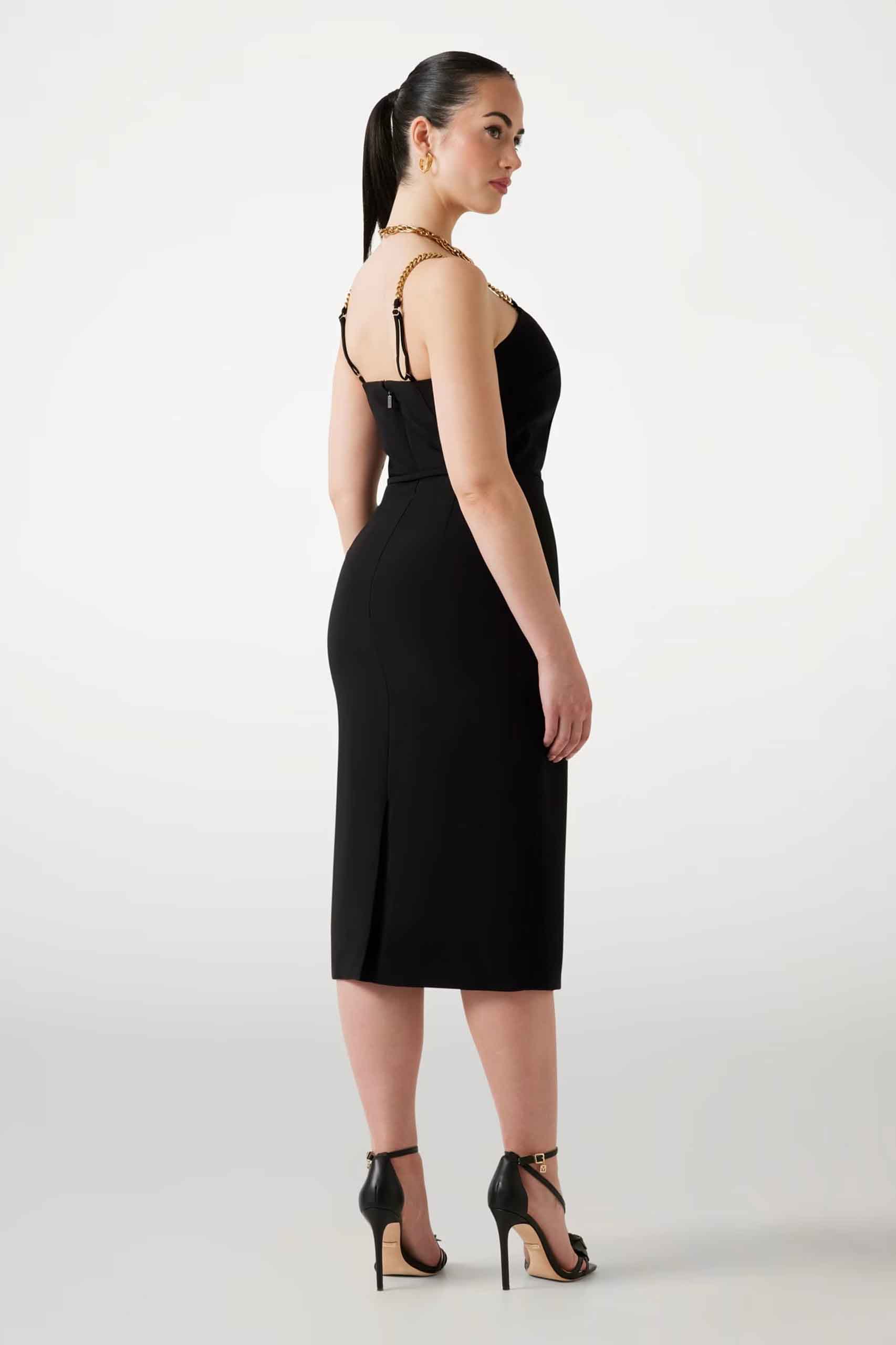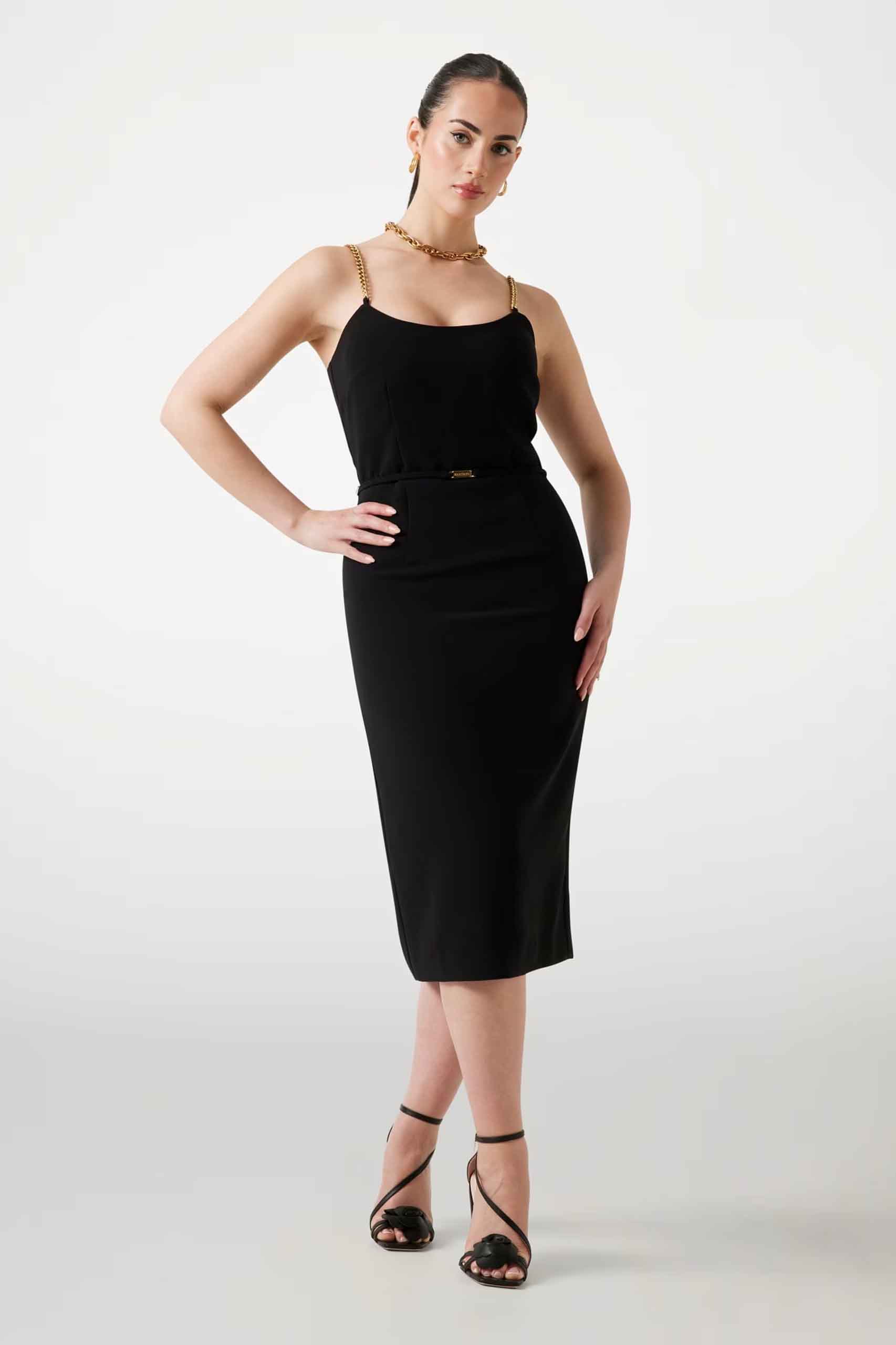 - Cinturón a juego fino con hebilla con logotipo dorada.