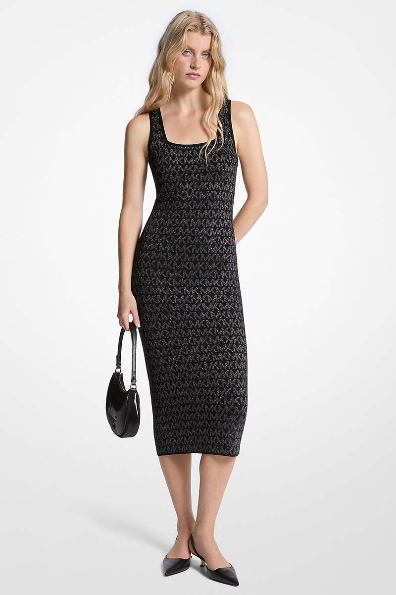 Este vestido midi de punto elástico exhibe nuestras icónicas iniciales con un acabado brillante. Se ha diseñado con un clásico escote cuadrado y una silueta ajustada para derrochar sofisticación sin esfuerzo. Póntelo en tu próximo cóctel con zapatos de tacón y un bolso pequeño.