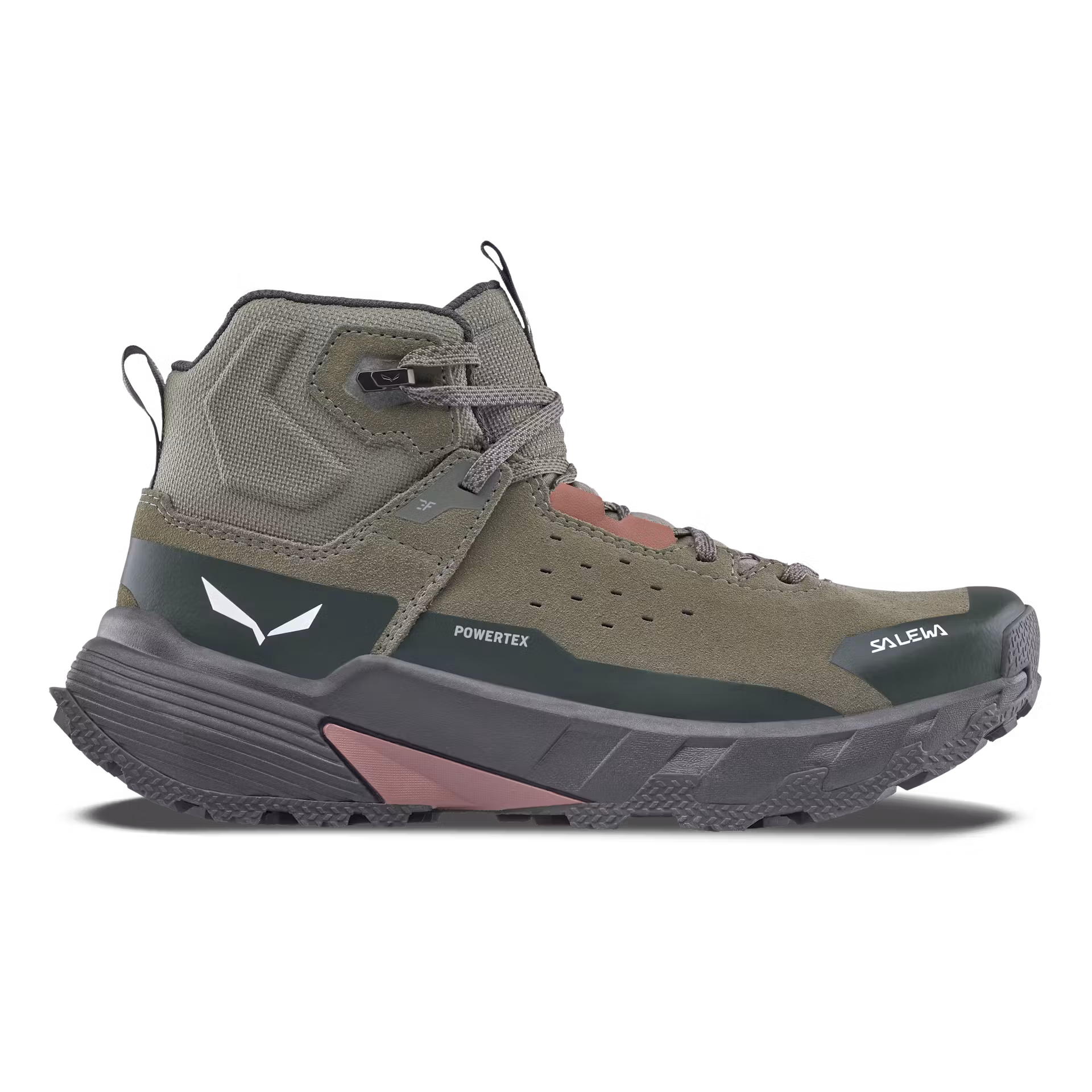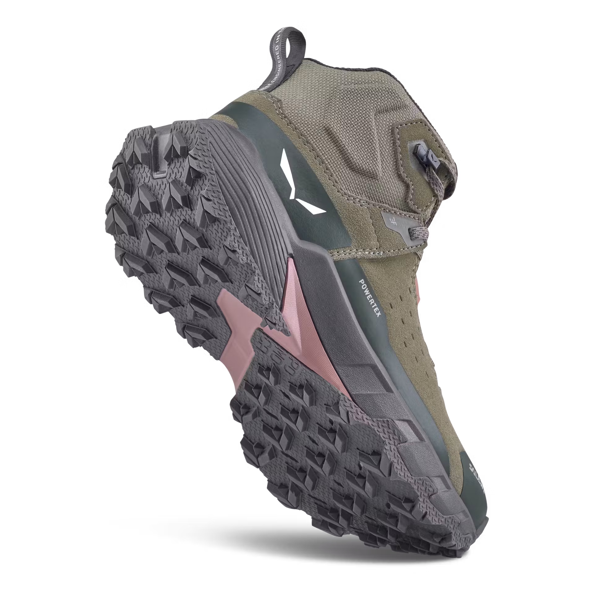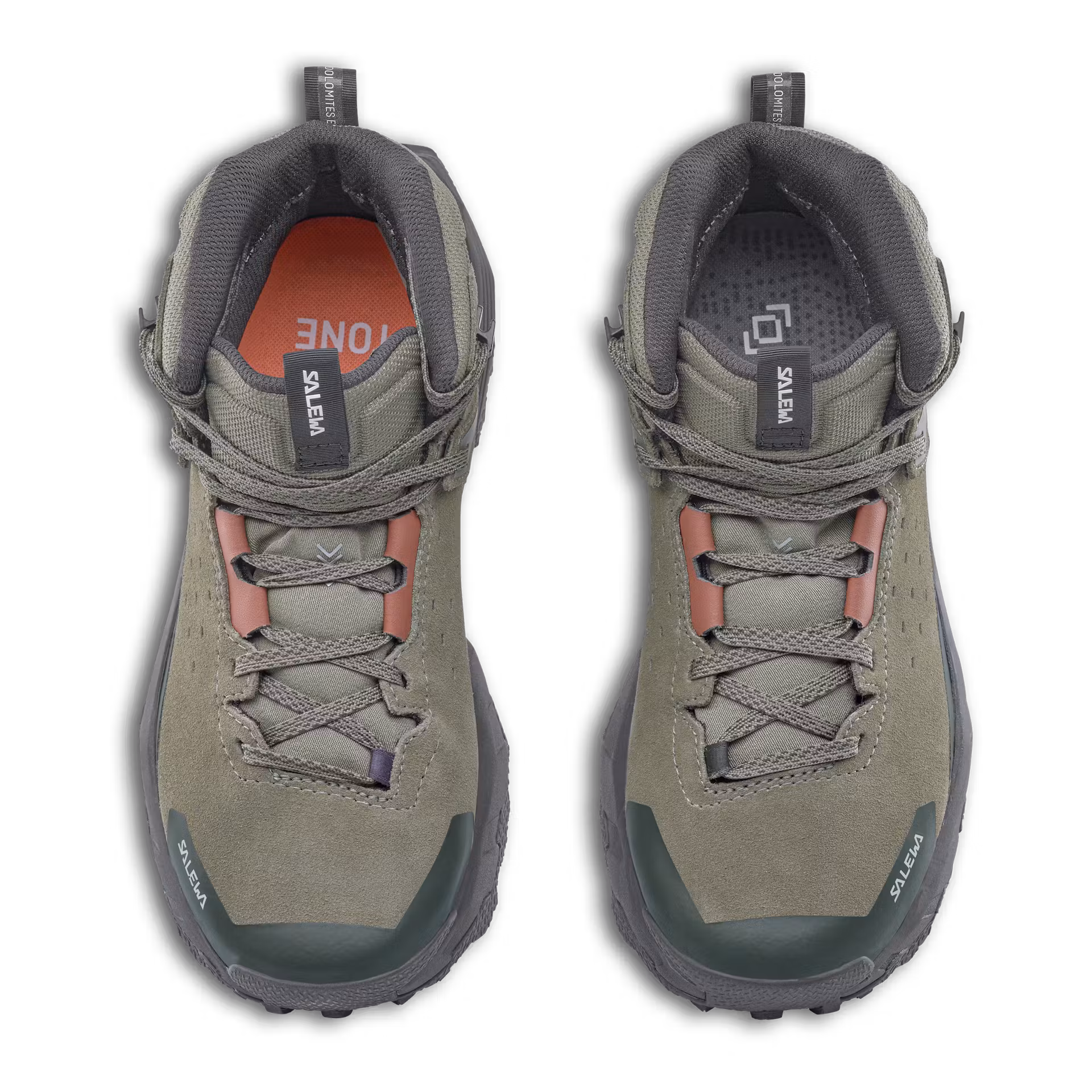 - La entresuela de EVA es de gran tamaño y ofrece amortiguación y un excelente rebote, mientras que su horma influenciada por el trail running, el nuevo sistema Salewa® 3F y la placa de EVA firme garantizan una estabilidad dinámica.